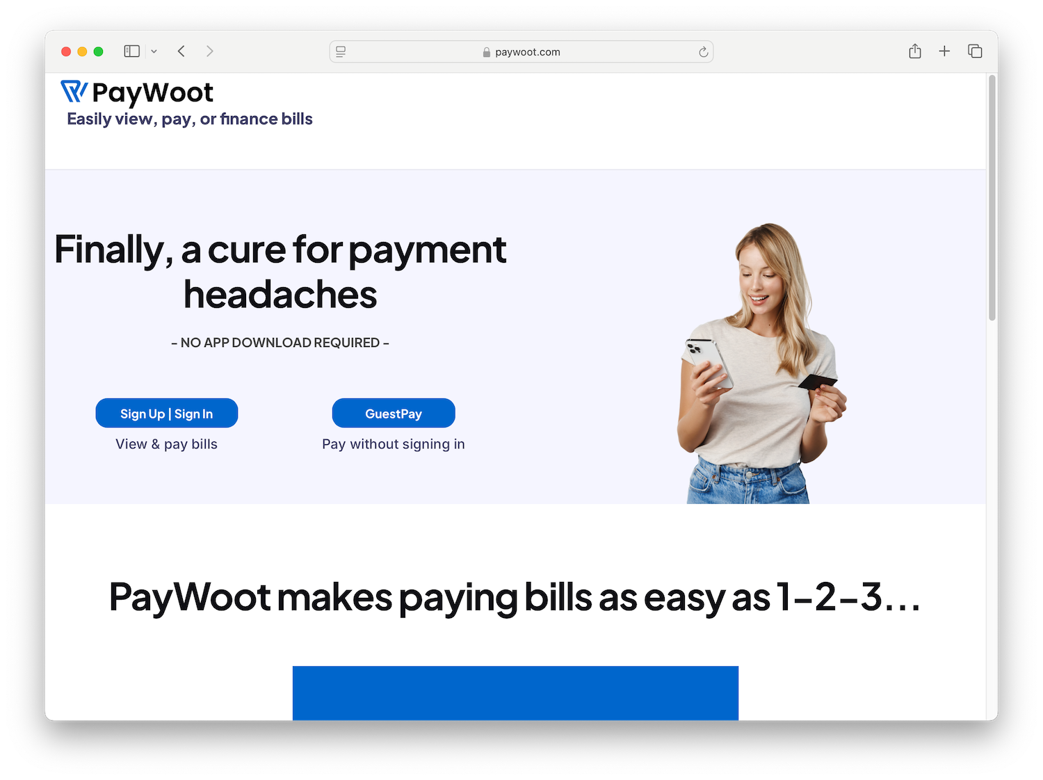 Online payments can be made using the external service PayWoot by clicking Make a Payment below. You will need the Account Number and the Form ID from your billing statement to make an online payment - both can be found in the payment coupon section of your mailed bill. An online account is not required, though you may choose to set up an account to simplify payment of future statements.